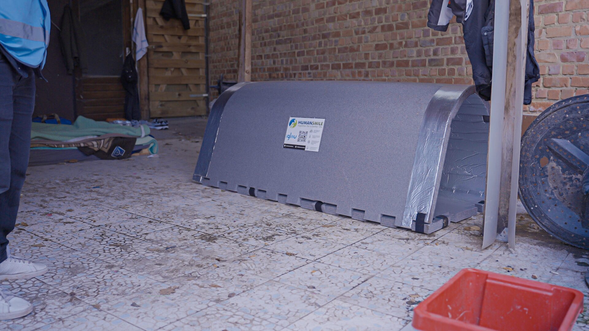 L’Iglou est un abri individuel pensé pour offrir une protection immédiate et vitale aux personnes vivant dehors en période hivernale.